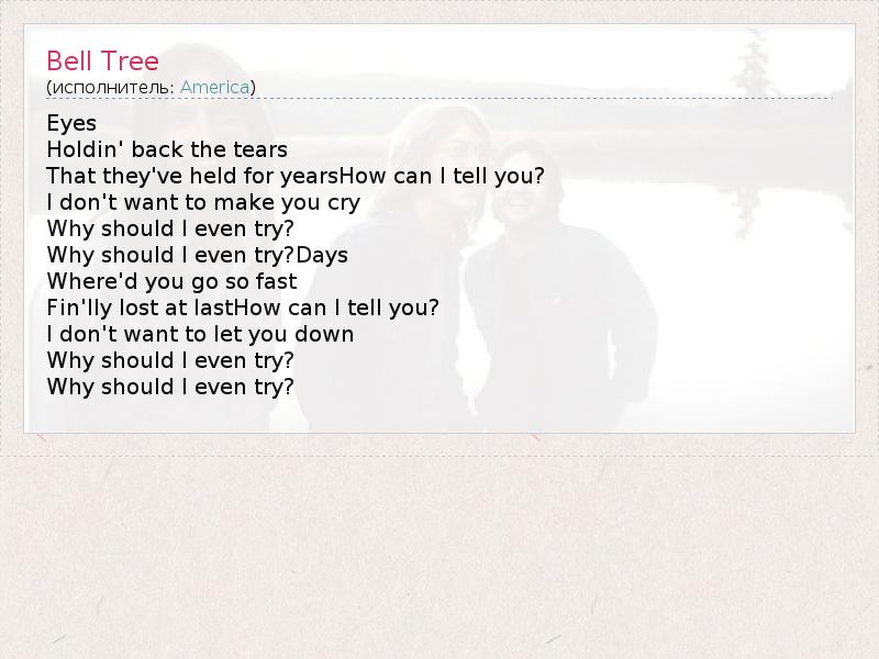 А как ты думаешь, о чем песня "Bell Tree" ?