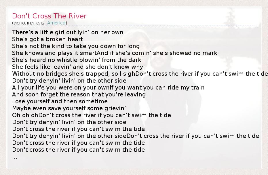 А как ты думаешь, о чем песня "Don't Cross The River" ?