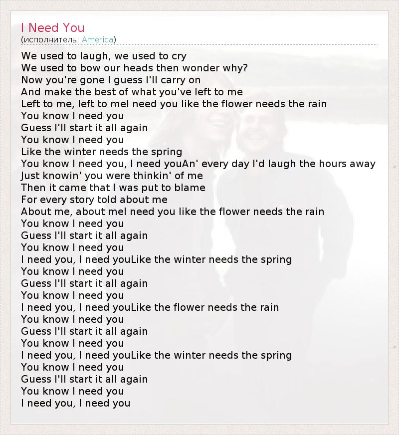 А как ты думаешь, о чем песня "I Need You" ?