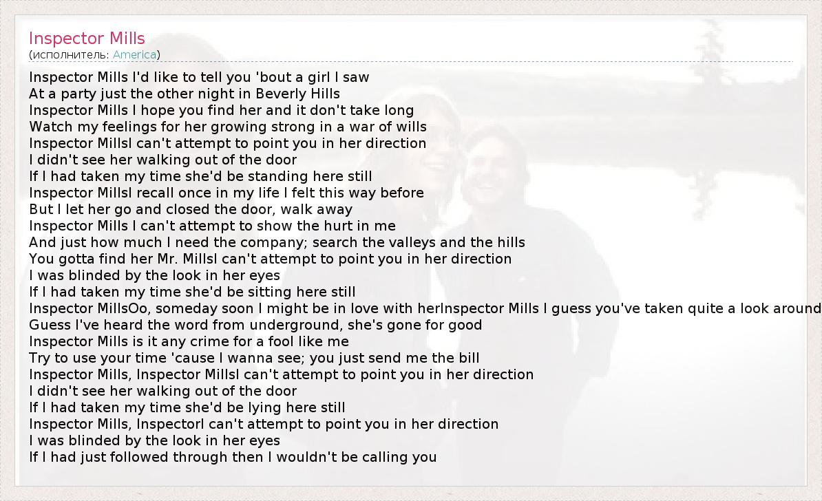 А как ты думаешь, о чем песня "Inspector Mills" ?