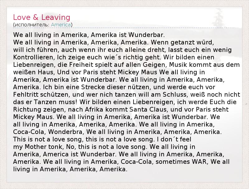 all living in Amerika, Amerika, Amerika. We all living in Amerika,