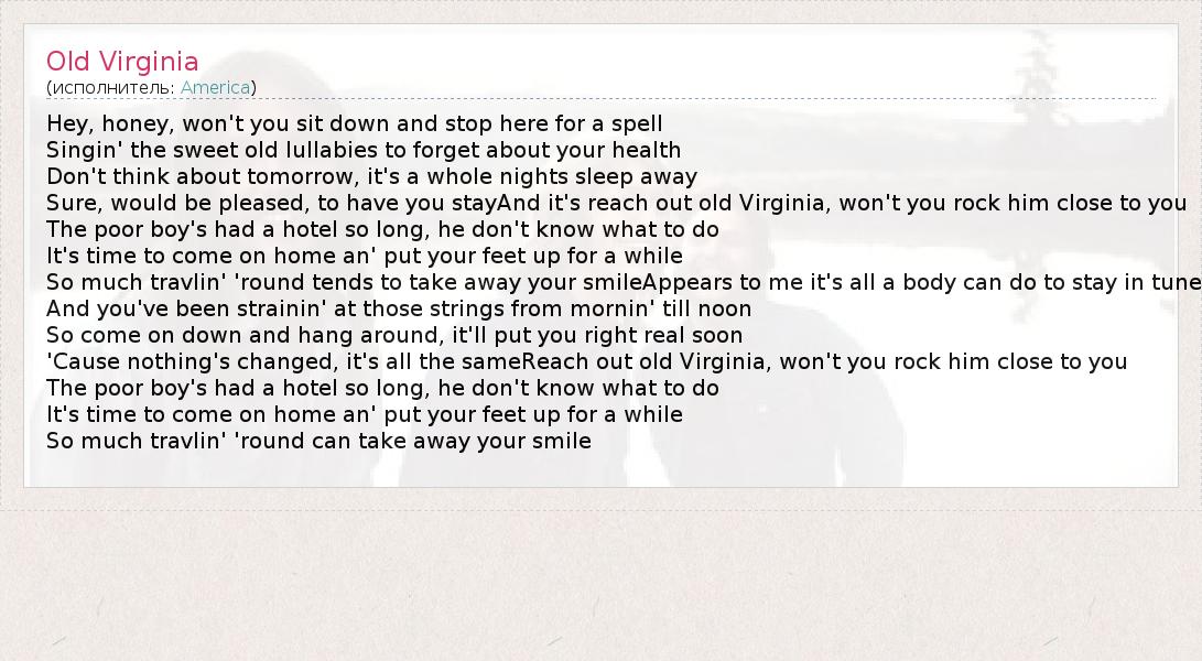 А как ты думаешь, о чем песня "Old Virginia" ?