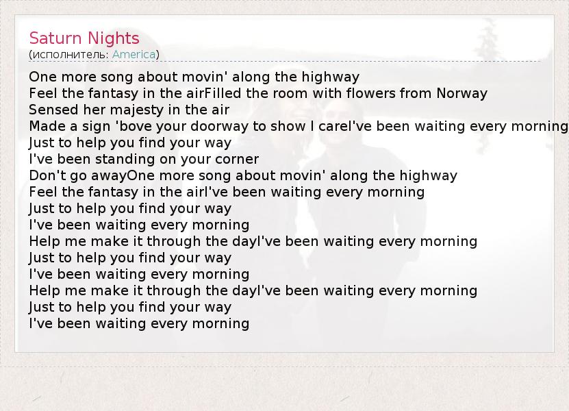 А как ты думаешь, о чем песня "Saturn Nights" ?