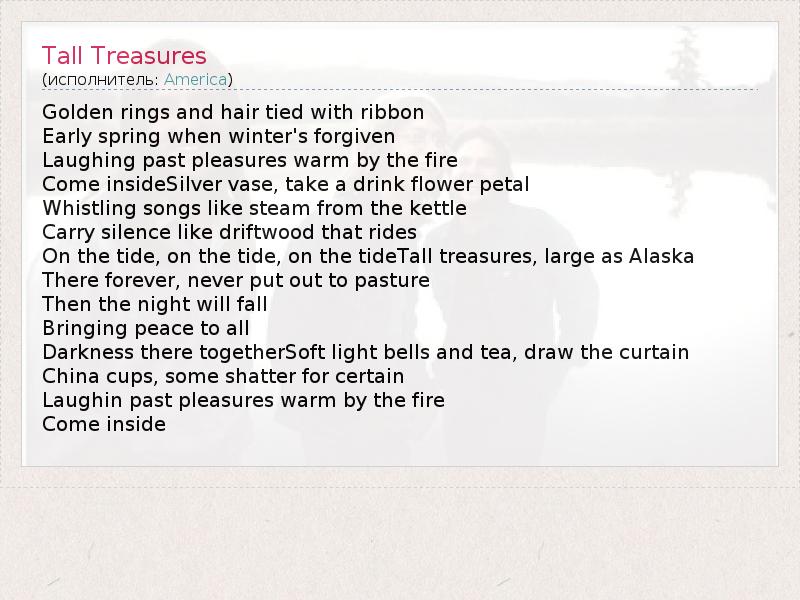А как ты думаешь, о чем песня "Tall Treasures" ?