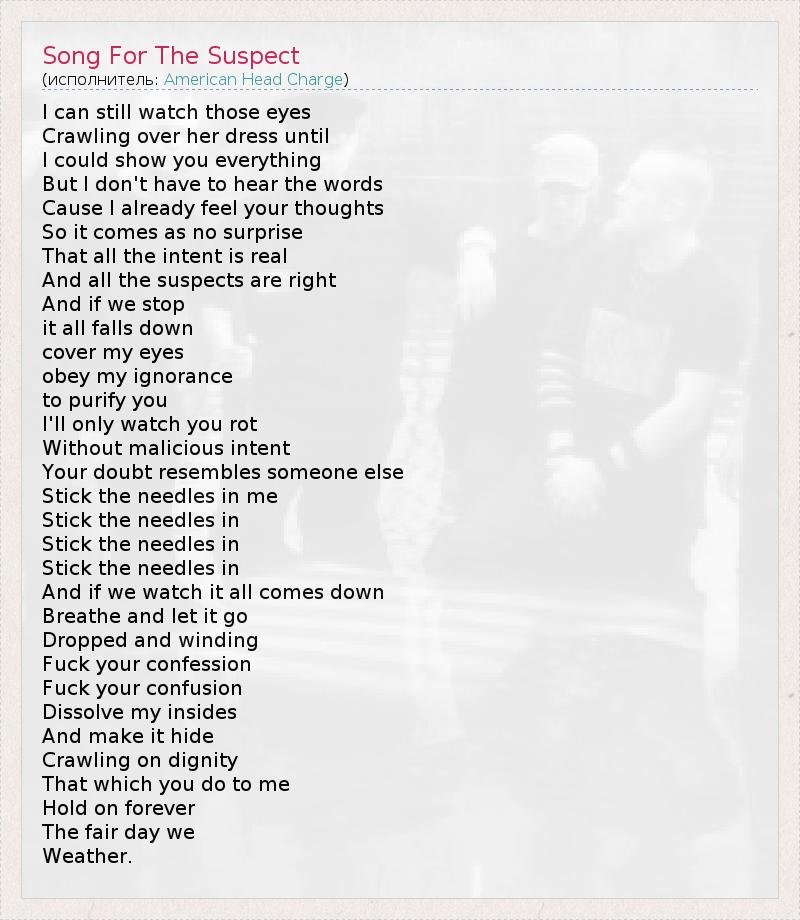 А как ты думаешь, о чем песня "Song For The Suspect" ?