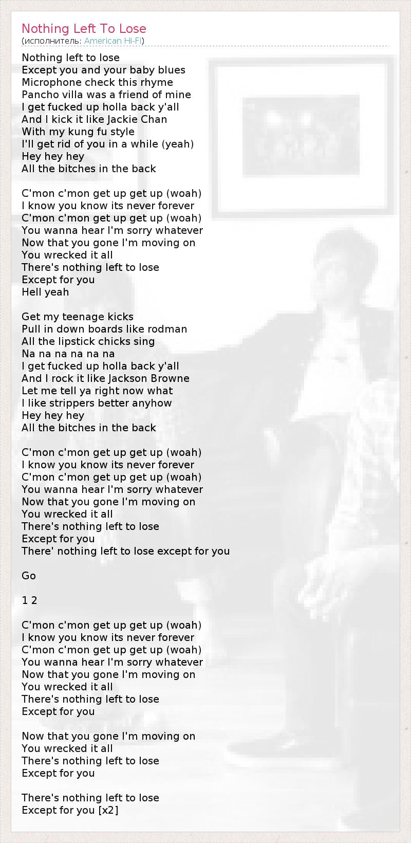 А как ты думаешь, о чем песня "Nothing Left To Lose" ?