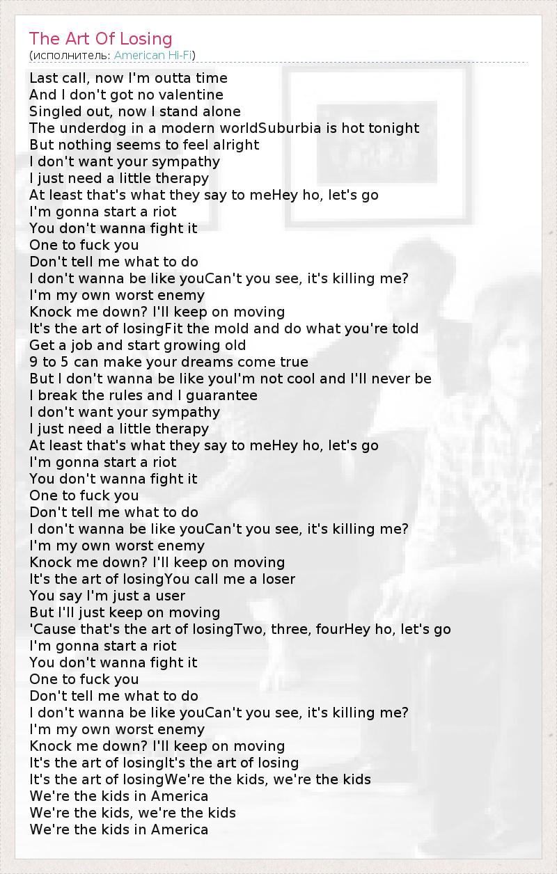 А как ты думаешь, о чем песня "The Art Of Losing" ?