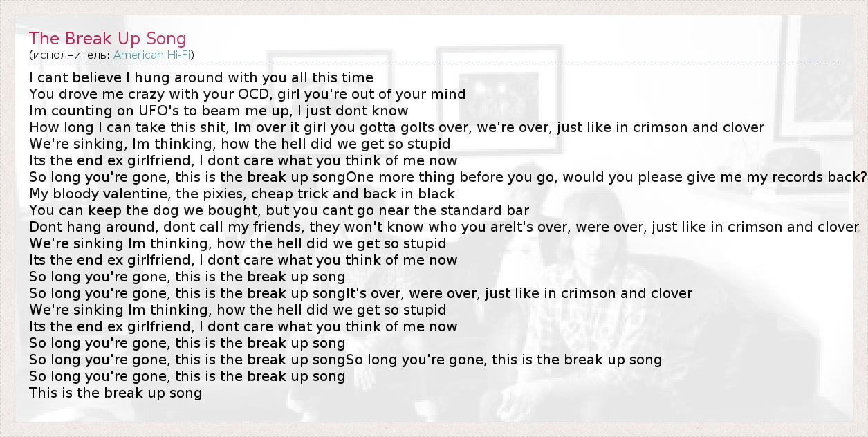 А как ты думаешь, о чем песня "The Break Up Song" ?