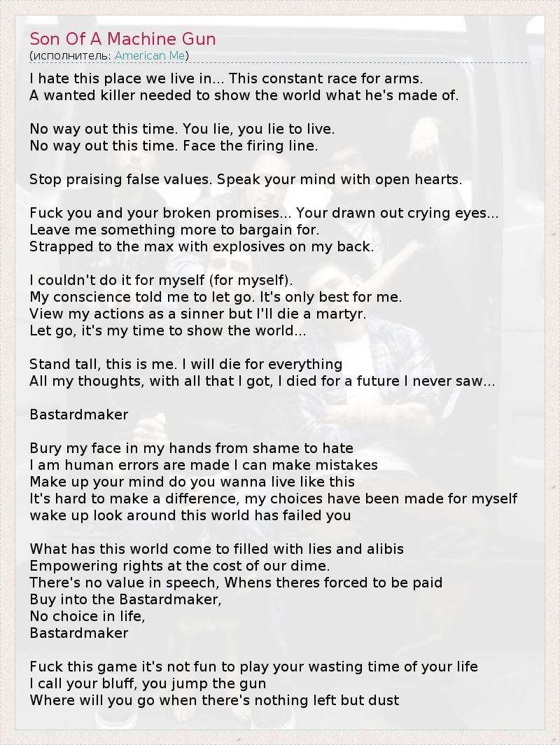 А как ты думаешь, о чем песня "Son Of A Machine Gun" ?