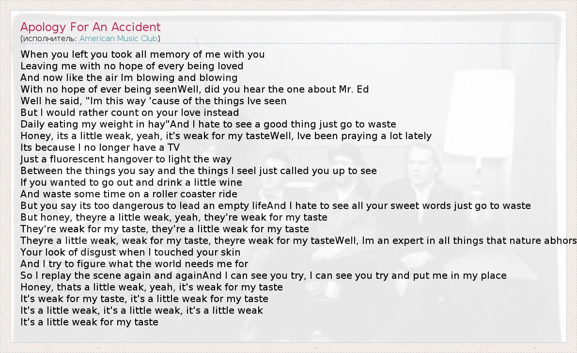 А как ты думаешь, о чем песня "Apology For An Accident" ?