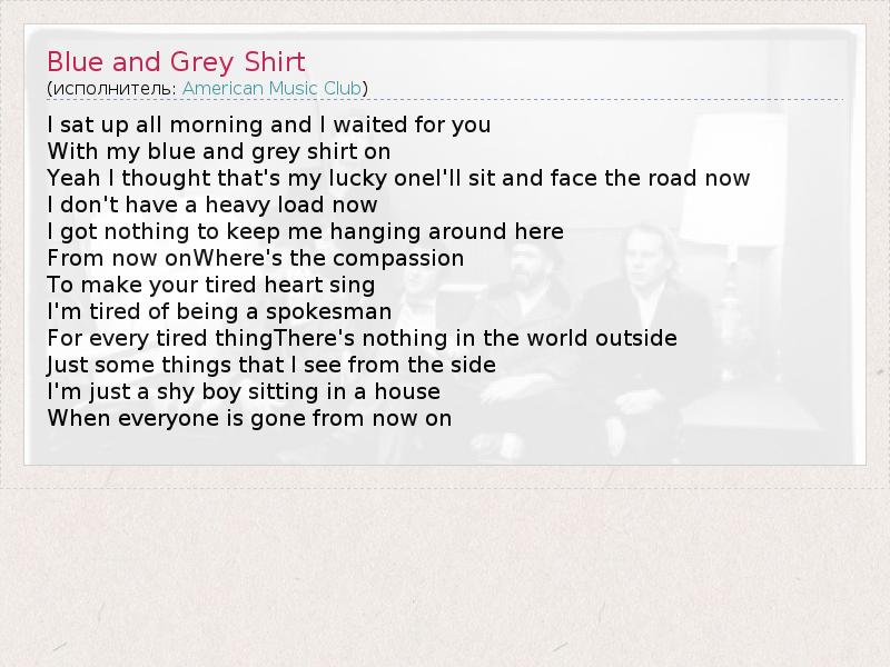 А как ты думаешь, о чем песня "Blue and Grey Shirt" ?