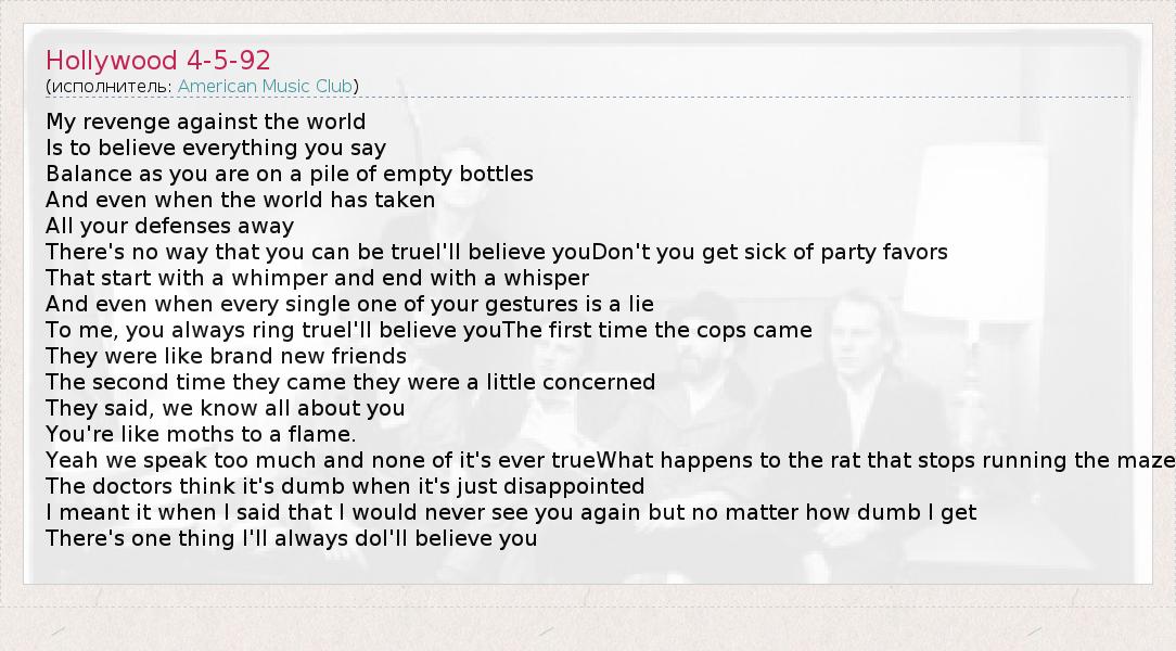 А как ты думаешь, о чем песня "Hollywood 4-5-92" ?