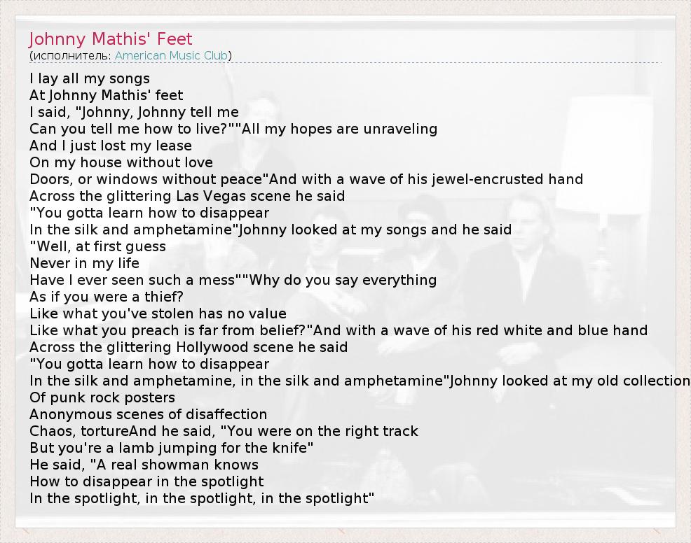 А как ты думаешь, о чем песня "Johnny Mathis' Feet" ?
