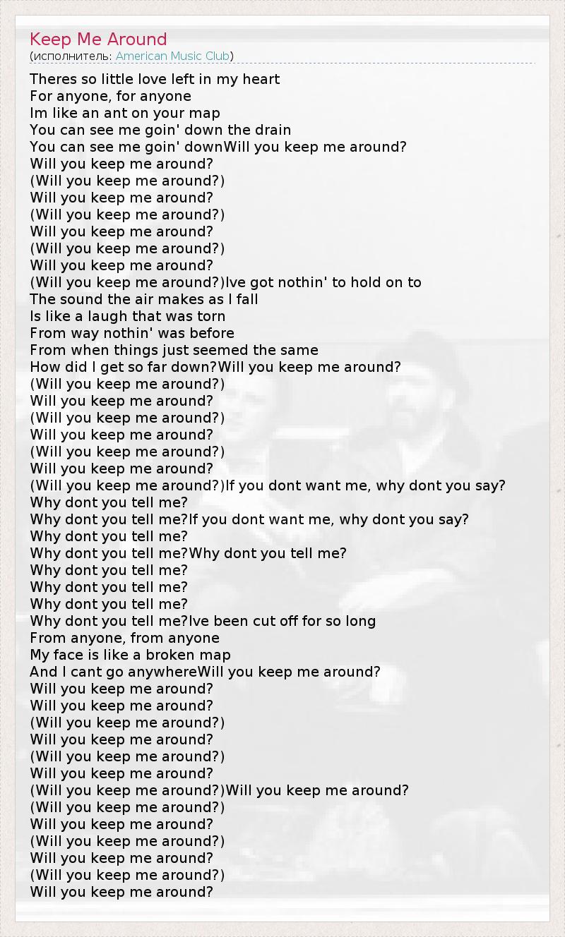 А как ты думаешь, о чем песня "Keep Me Around" ?