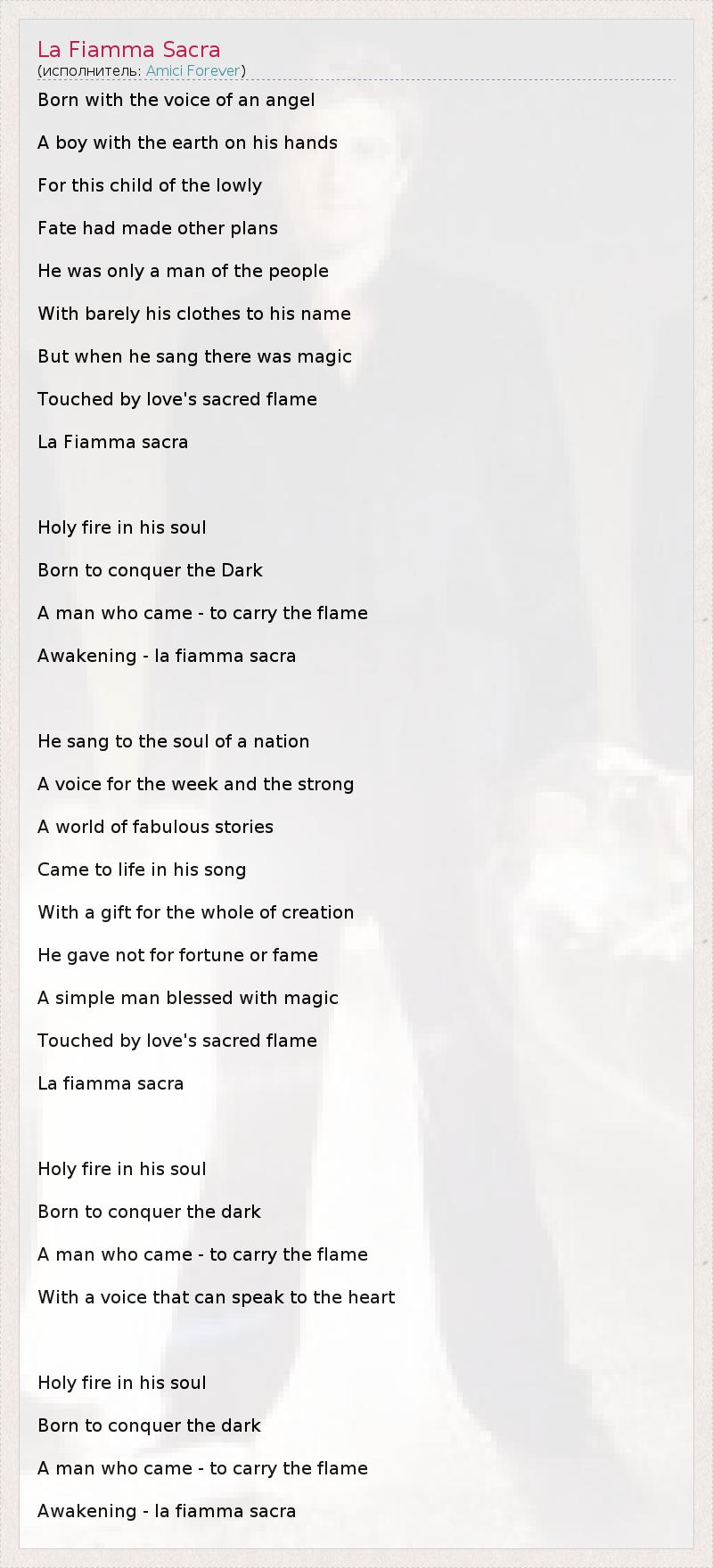 А как ты думаешь, о чем песня "La Fiamma Sacra" ?