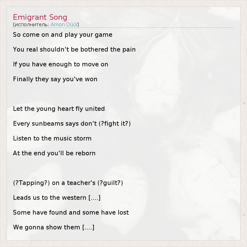 А как ты думаешь, о чем песня "Emigrant Song" ?