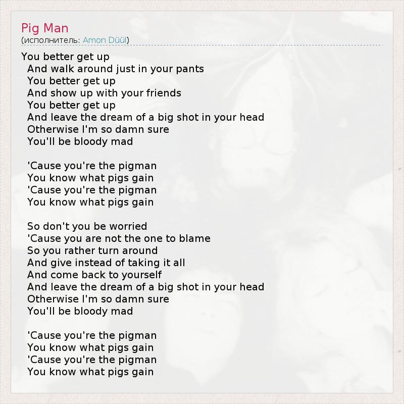 А как ты думаешь, о чем песня "Pig Man" ?