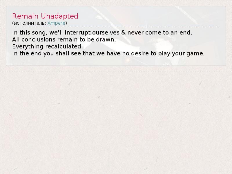 А как ты думаешь, о чем песня "Remain Unadapted" ?