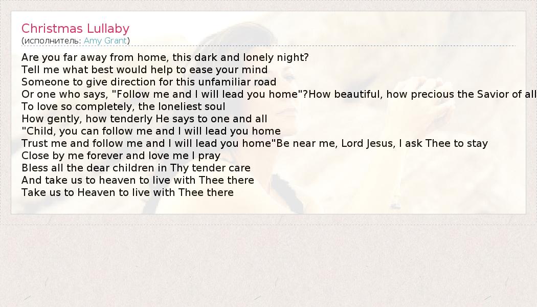 А как ты думаешь, о чем песня "Christmas Lullaby" ?