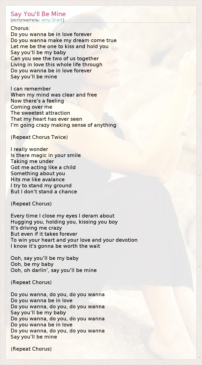 А как ты думаешь, о чем песня "Say You'll Be Mine" ?