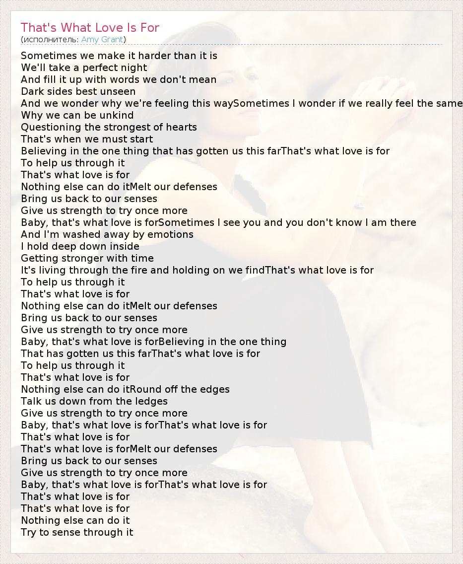 А как ты думаешь, о чем песня "That's What Love Is For" ?