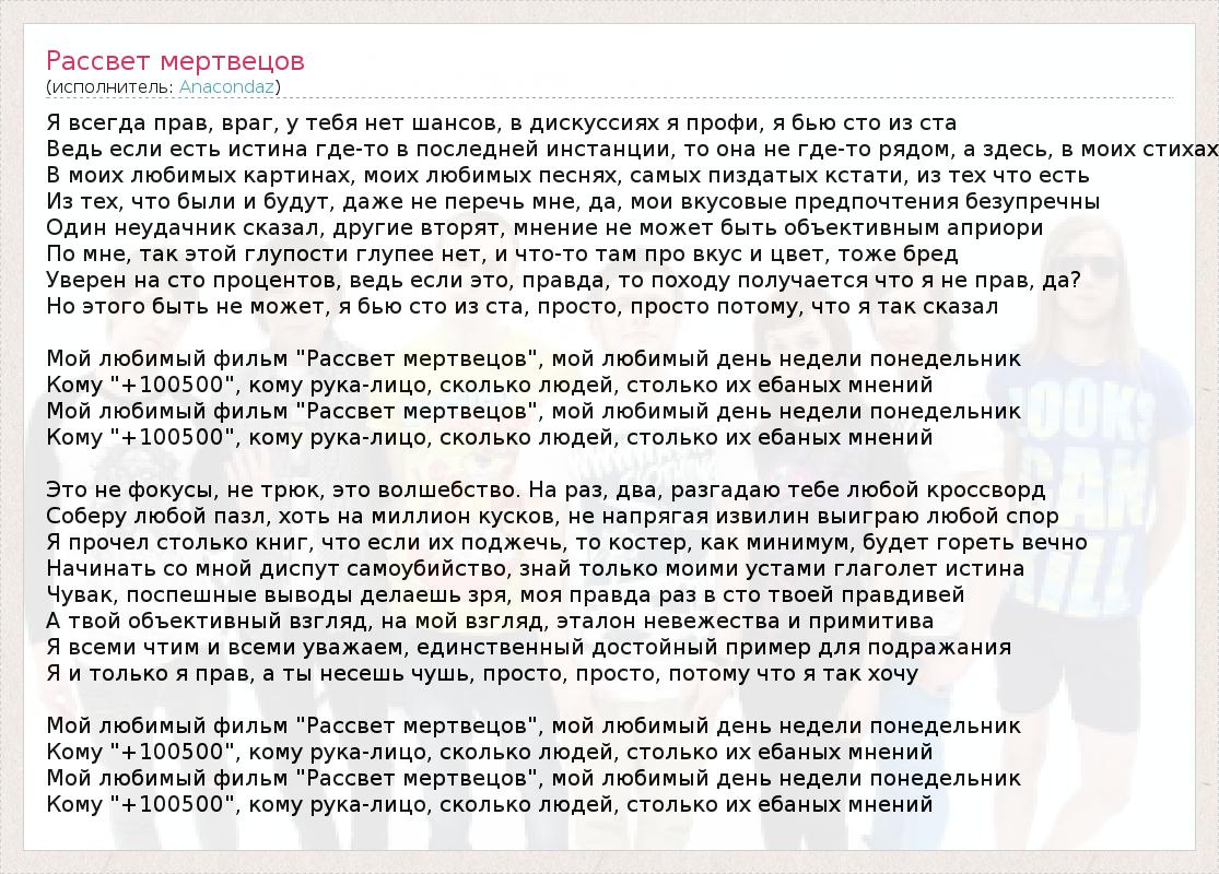 А как ты думаешь, о чем песня "Рассвет мертвецов" ?