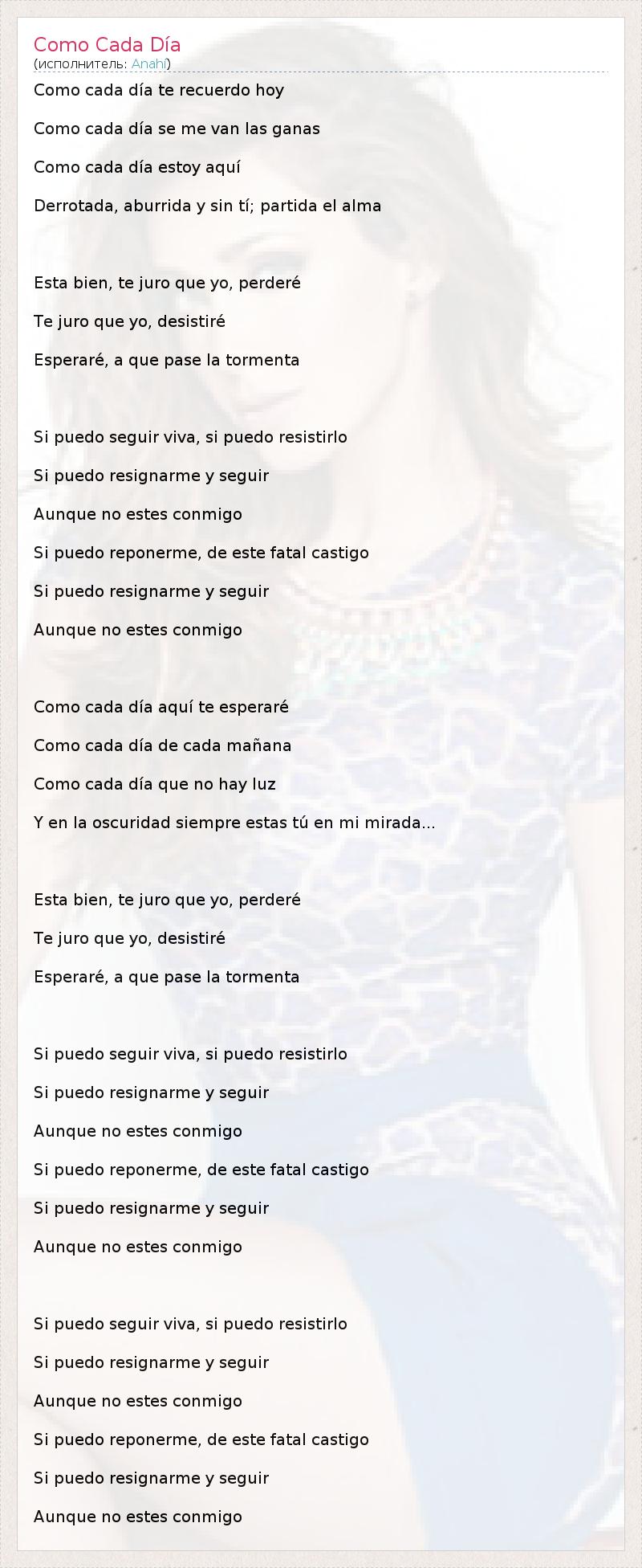 А как ты думаешь, о чем песня "Como Cada Día" ?