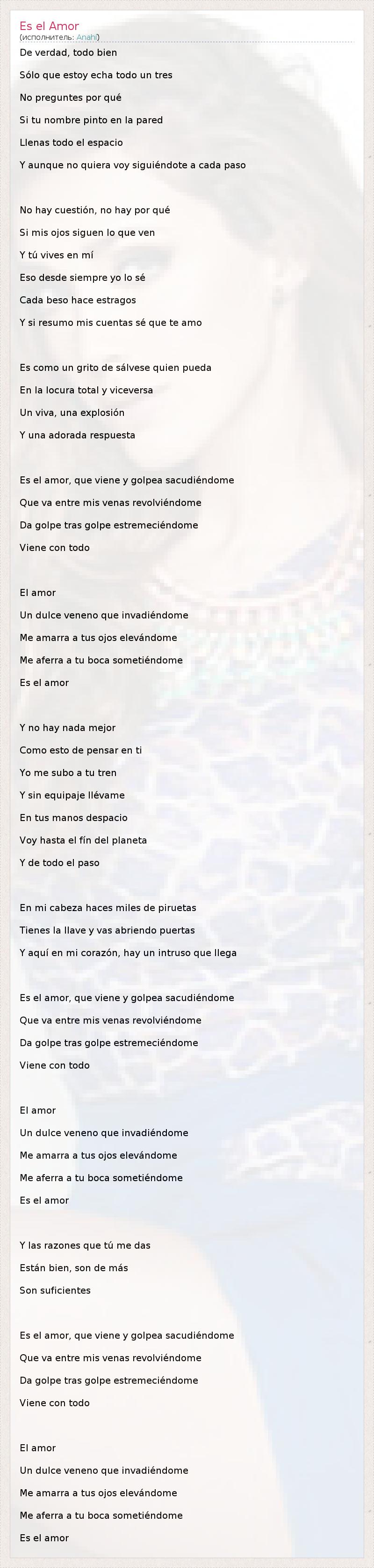 А как ты думаешь, о чем песня "Es el Amor" ?