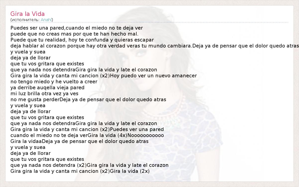Gira gira la vida y canta mi cancion (x2)Gira la vida (2x)