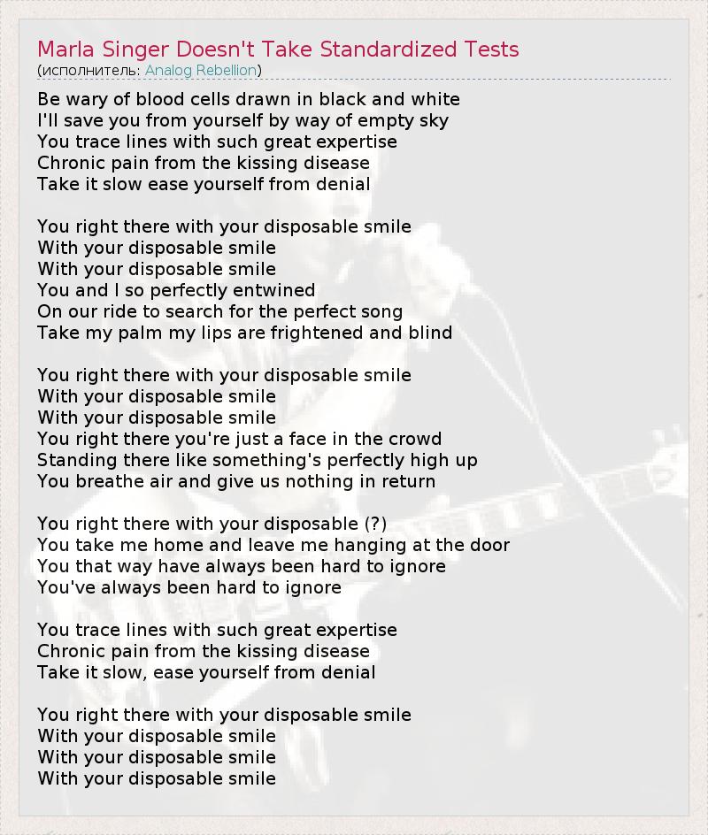 А как ты думаешь, о чем песня "Marla Singer Doesn't Take Standardized Tests" ?