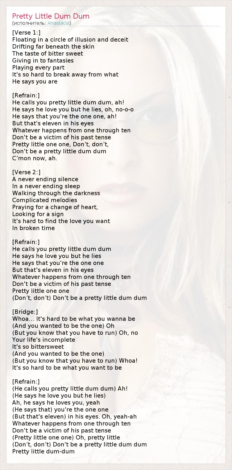 ГлавнаяИсполнителиAnastaciaPretty Little Dum Dum