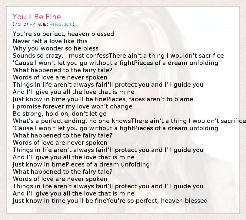 Just know in time you'll be fineYou're so perfect, heaven blessed