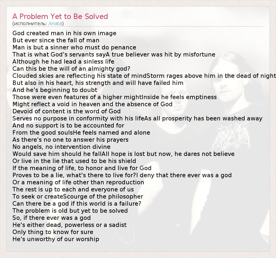 А как ты думаешь, о чем песня "A Problem Yet to Be Solved" ?