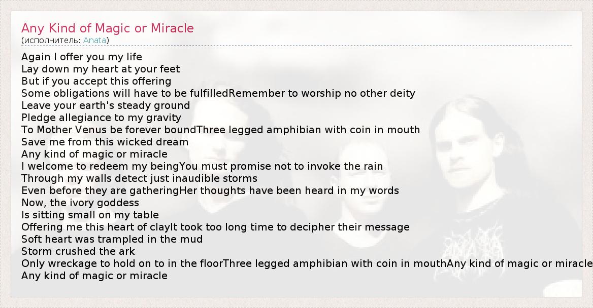 А как ты думаешь, о чем песня "Any Kind of Magic or Miracle" ?