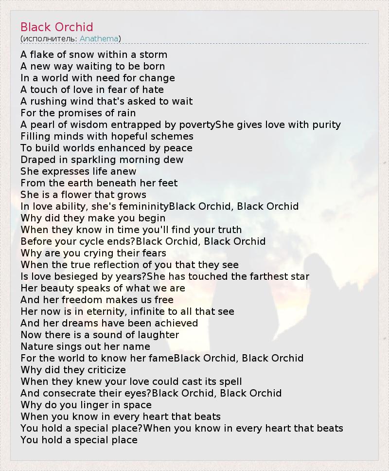 А как ты думаешь, о чем песня "Black Orchid" ?