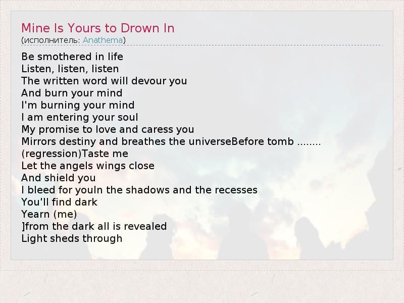 А как ты думаешь, о чем песня "Mine Is Yours to Drown In" ?