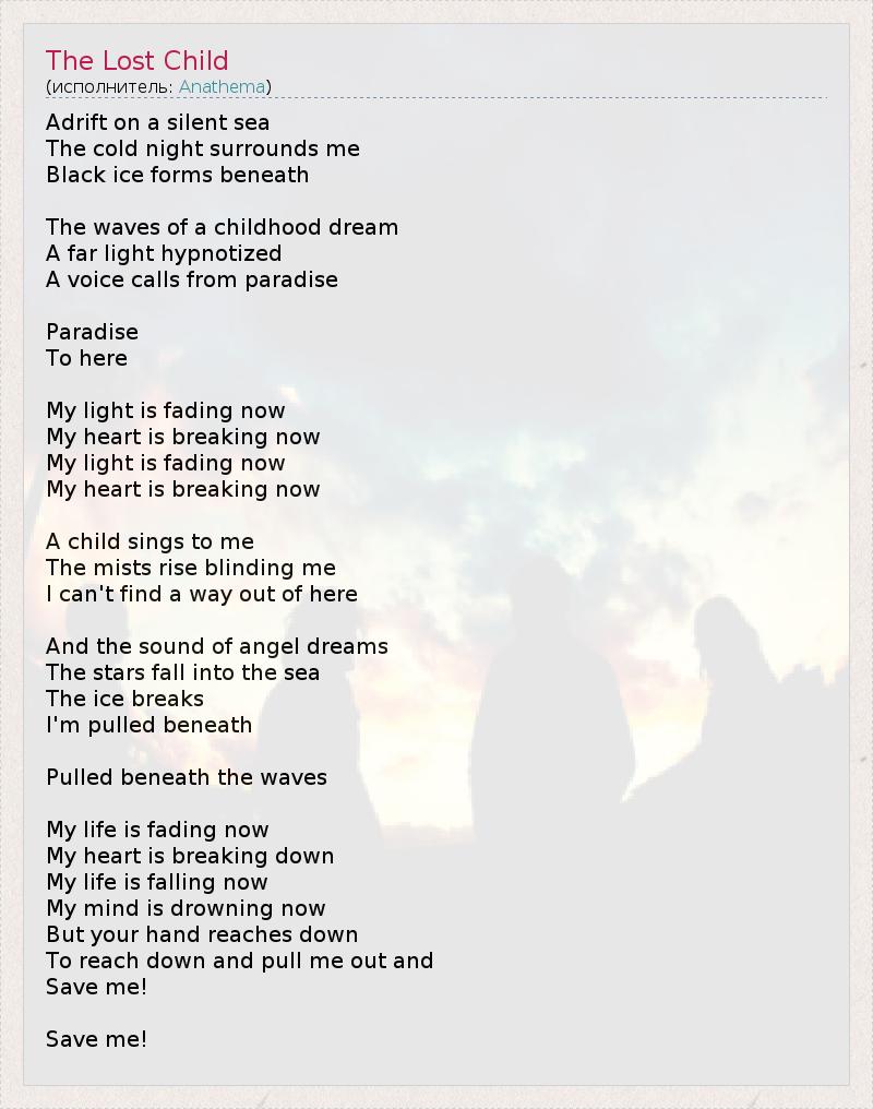 А как ты думаешь, о чем песня "The Lost Child" ?