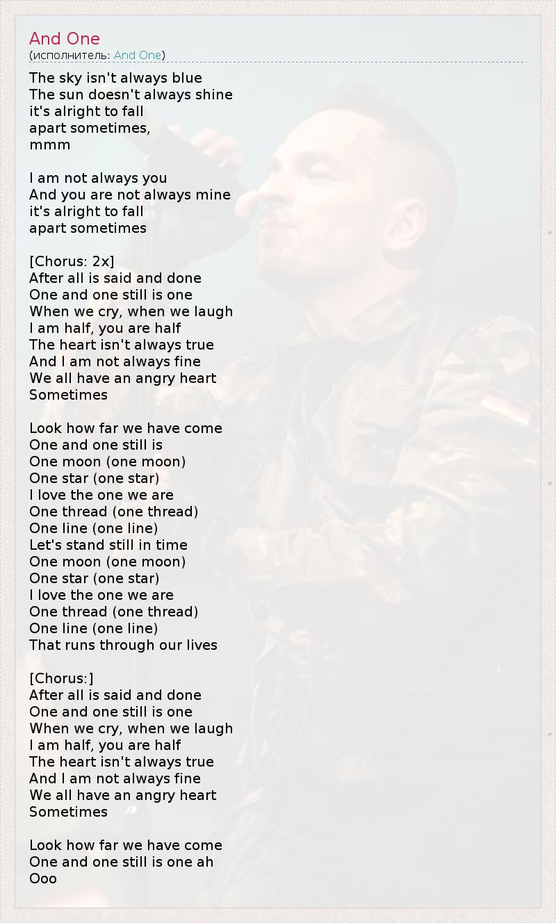 А как ты думаешь, о чем песня "And One" ?