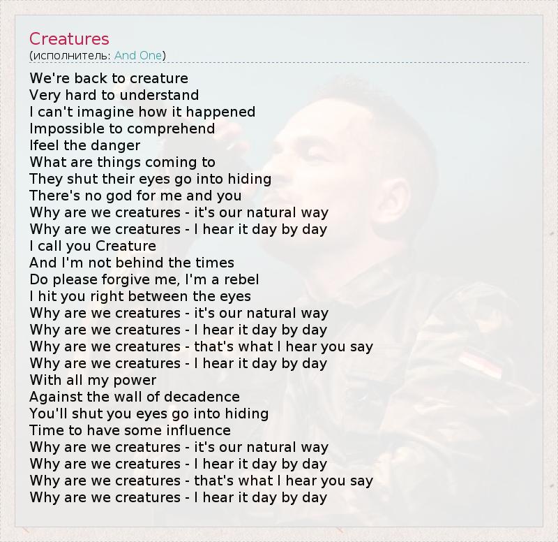 Это интересно:Группа And One была основана в 1989 году Стивом Нагави (Steve Naghavi) и Крисом Руизом (Chris Ruiz), через год после их знакомства на Берлинской дискотеке "Linientreu". Оба оказались большими поклонниками бельгийской EBM музыки (в частности Front 242). Изначально в музыке решено было использовать лишь драм-машину и два синтезатора, как до них делали Depeche Mode.Начало было положено записью демо-пленки, которая... продолжение
