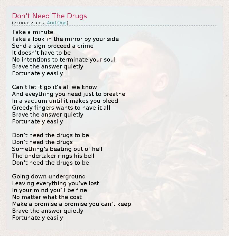 ГлавнаяИсполнителиAnd OneDon't Need The Drugs