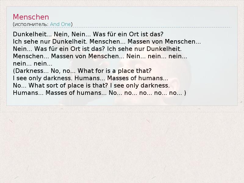 Это интересно:Группа And One была основана в 1989 году Стивом Нагави (Steve Naghavi) и Крисом Руизом (Chris Ruiz), через год после их знакомства на Берлинской дискотеке "Linientreu". Оба оказались большими поклонниками бельгийской EBM музыки (в частности Front 242). Изначально в музыке решено было использовать лишь драм-машину и два синтезатора, как до них делали Depeche Mode.Начало было положено записью демо-пленки, которая... продолжение