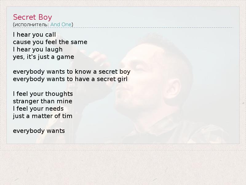 А как ты думаешь, о чем песня "Secret Boy" ?