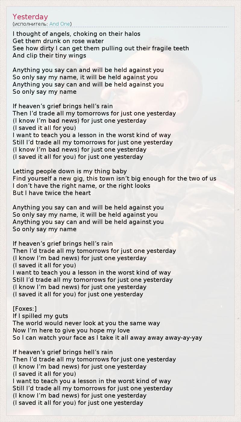 Тогда я бы обменял все мои "завтра" лишь на одно "вчера".