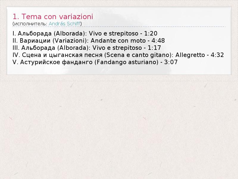 А как ты думаешь, о чем песня "1. Tema con variazioni" ?