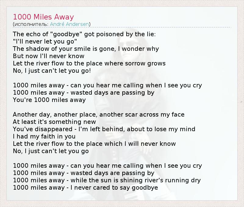 А как ты думаешь, о чем песня "1000 Miles Away" ?