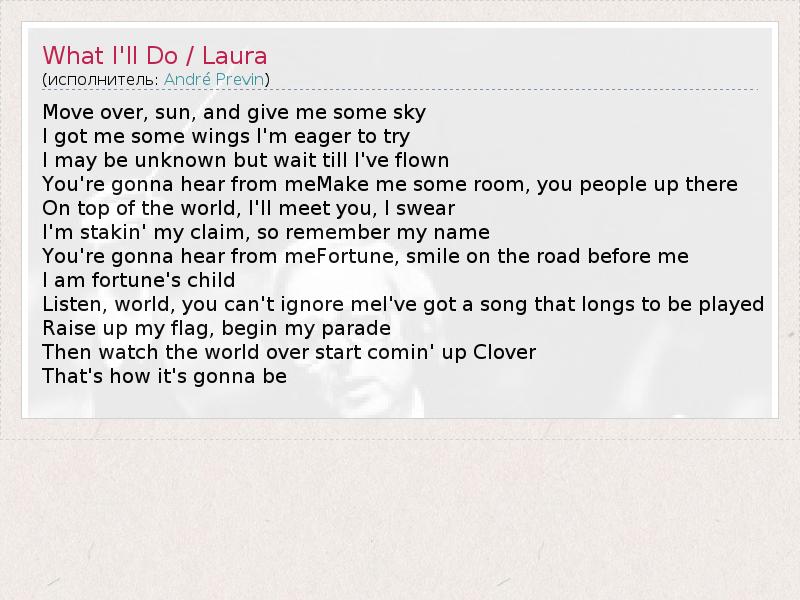 А как ты думаешь, о чем песня "What I'll Do / Laura" ?