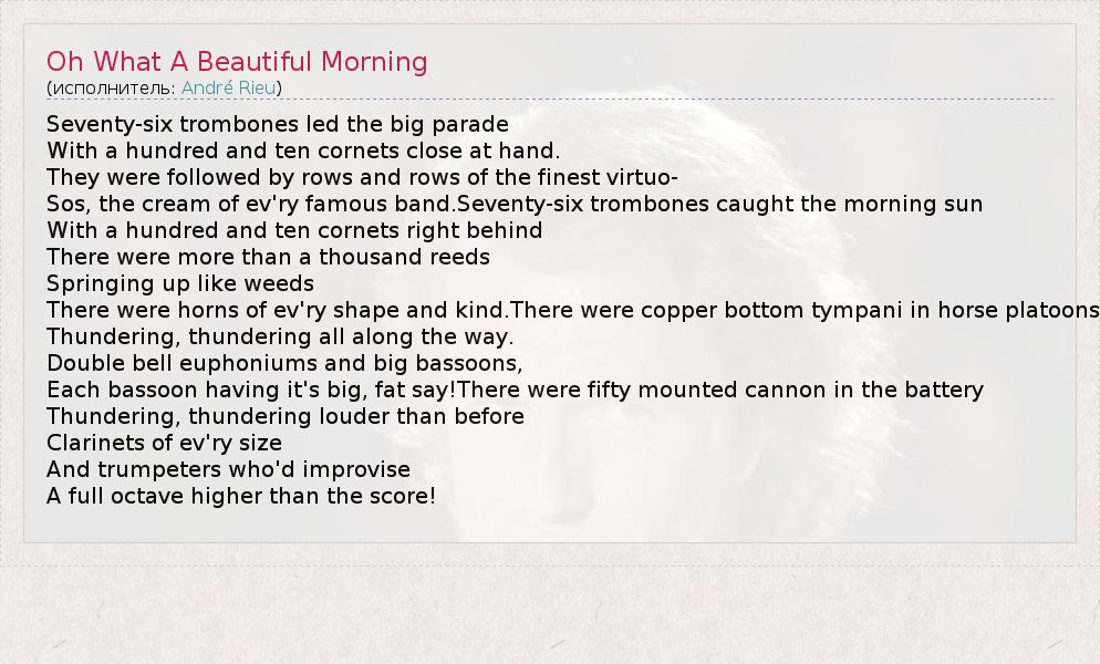 А как ты думаешь, о чем песня "Oh What A Beautiful Morning" ?