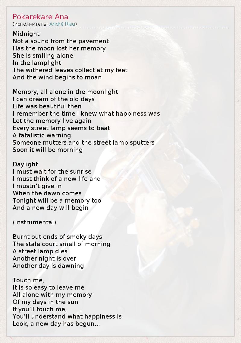 Memory, all alone in the moonlight
