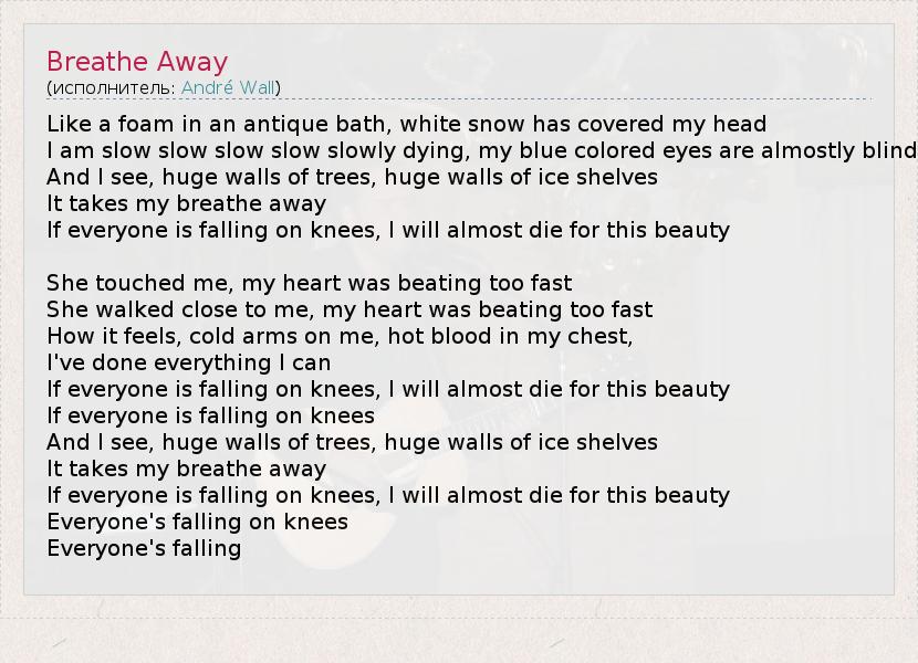 А как ты думаешь, о чем песня "Breathe Away" ?