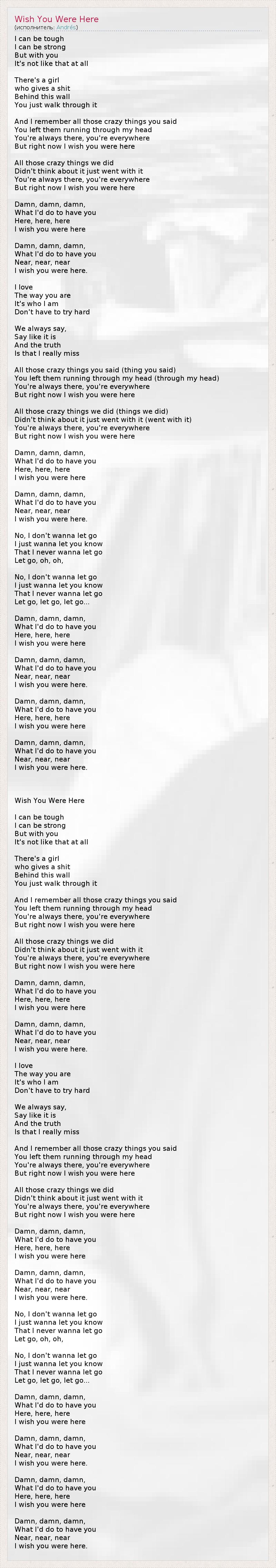 А как ты думаешь, о чем песня "Wish You Were Here" ?